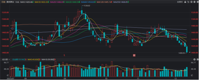 注:贵州茅台近期股价持续走低(截至12月9日收盘)